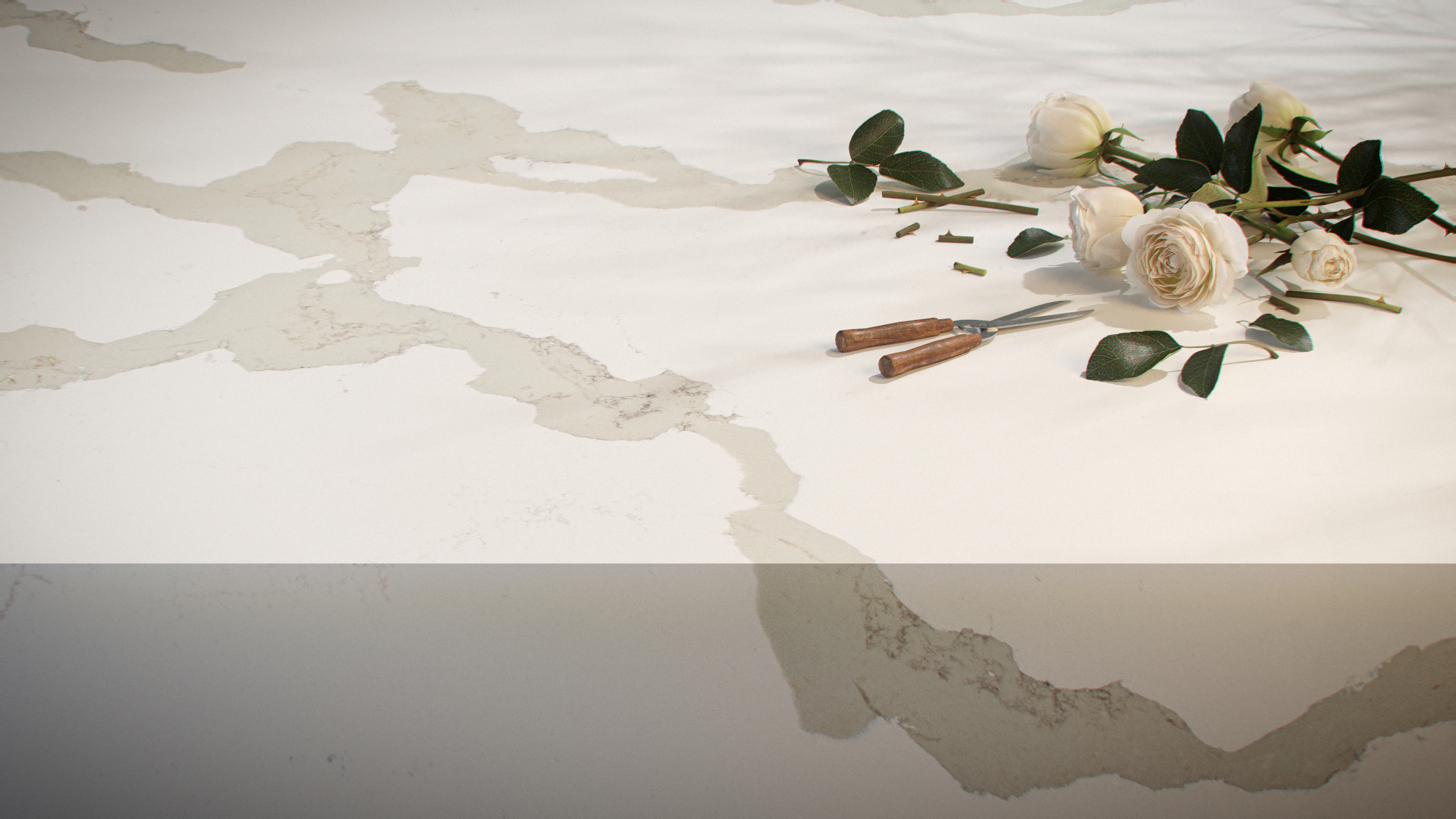 A stunning representation of natural marble, Caesarstone’s Arabetto™ features a bold and dynamic vein atop a sleek, white, polished surface for a timeless and elegant look.